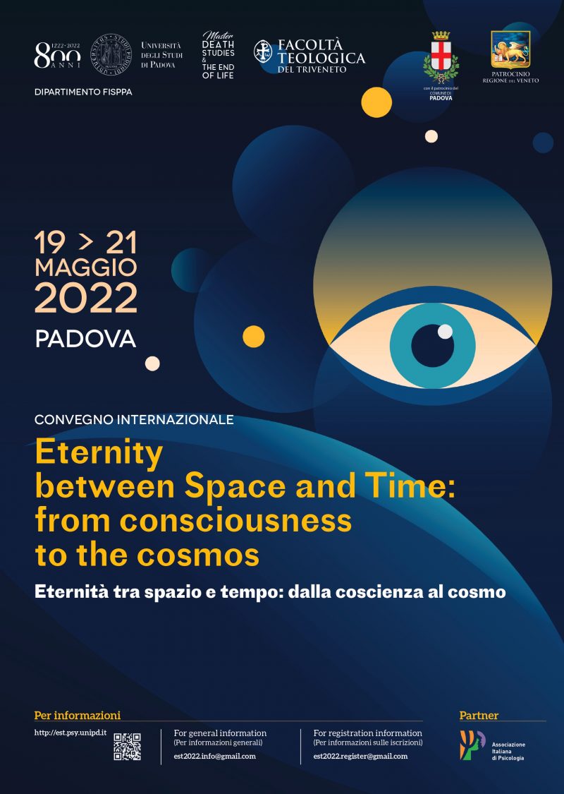 Il Dipartimento di Filosofia, sociologia, pedagogia e psicologia applicata (Fisppa) dell’Università di Padova, in occasione delle celebrazioni per l’Ottocentenario dell’Ateneo organizza il convegno internazionale Eternità tra spazio e tempo: dalla coscienza al cosmo – EST, che si svolgerà a Padova dal 19 al 21 maggio 2022.